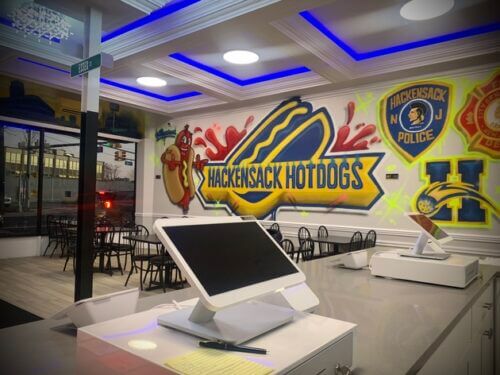 Hackensack Hotdogs’ flagship location is at the corner of State and Essex Streets. Just step away from the Bergen County Courthouse. The store’s design and concept represent the community. With walls decked out in Hackensack’s landmarks, city memorabilia and a hand painted graffiti mural, the location is a destination Hot Spot!