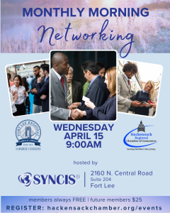 Rise and shine with the Hackensack Regional Chamber of Commerce for our monthly Morning Networking. Kickstart your day with a hot cup of coffee, light bites, and the chance to make meaningful connections with local business owners, professionals, and community leaders.