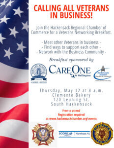 Join the Hackensack Regional Chamber of Commerce for a Veterans Networking Breakfast. Meet other Veterans in business, find ways to work together and help each other.